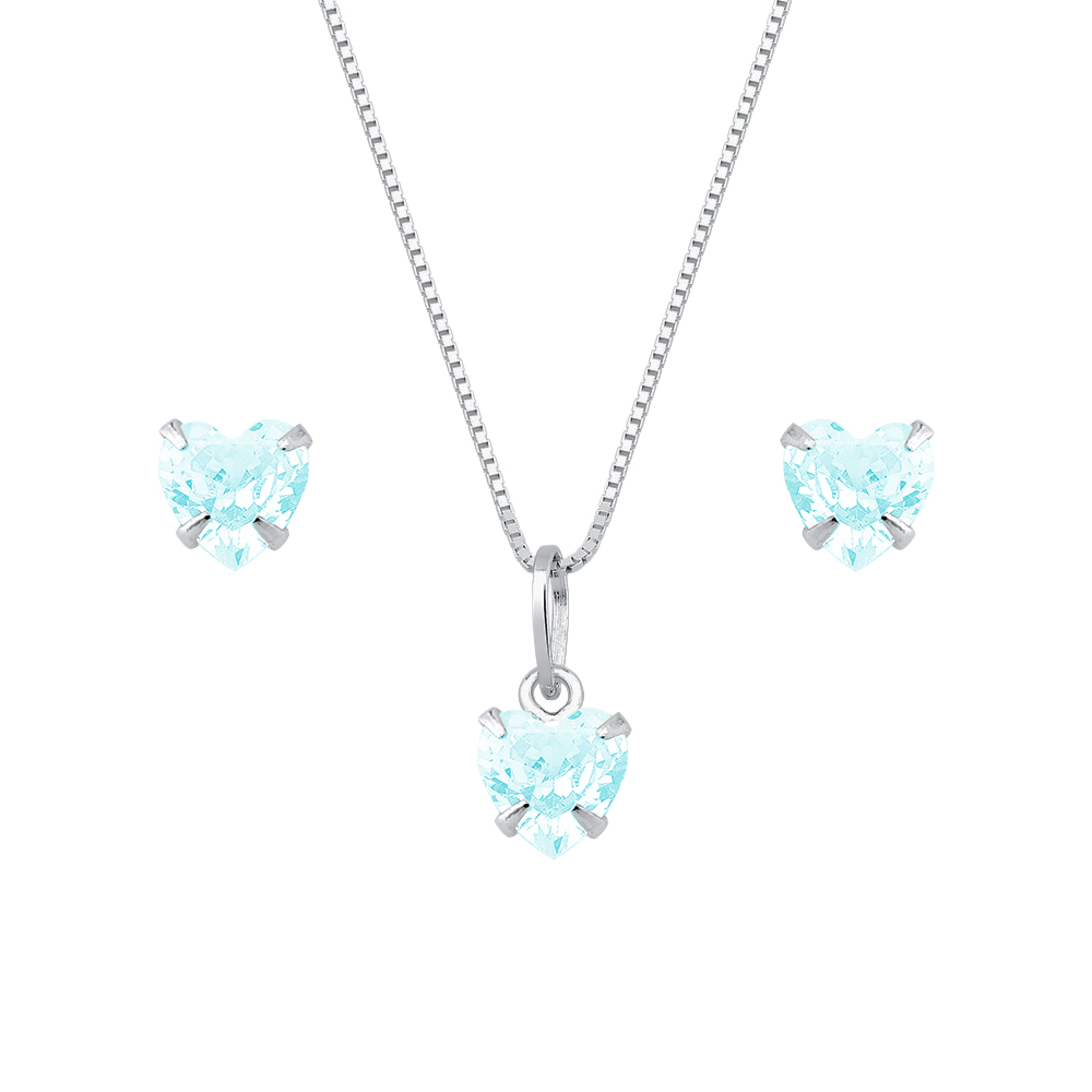 Conjunto de Coração Azul em Zircônia Prata 925
